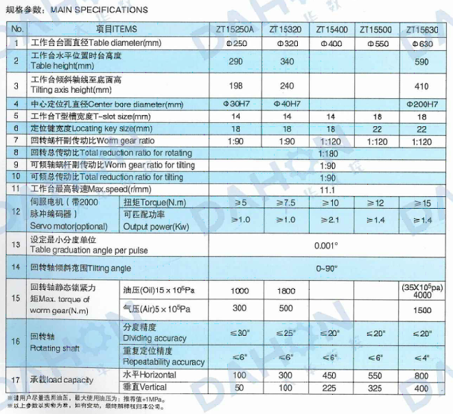 • 產品名稱: ZT15(250-630)系列手動可傾數控回轉工作臺