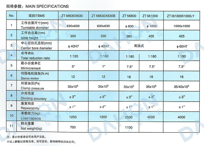 • 產品名稱: ZT56(630-1000)系列數控等分回轉工作臺